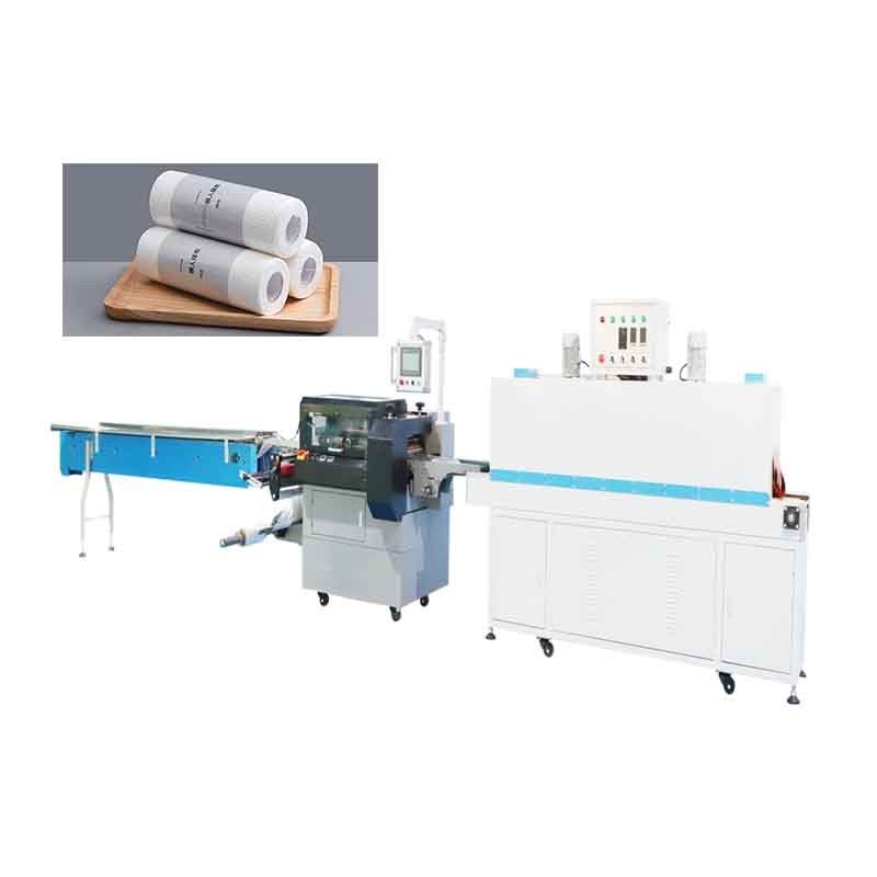 หน้าจอสัมผัสและ PLC ควบคุมเครื่องห่อฟิล์มหดเศษผ้าอัจฉริยะแบบใช้แล้วทิ้ง